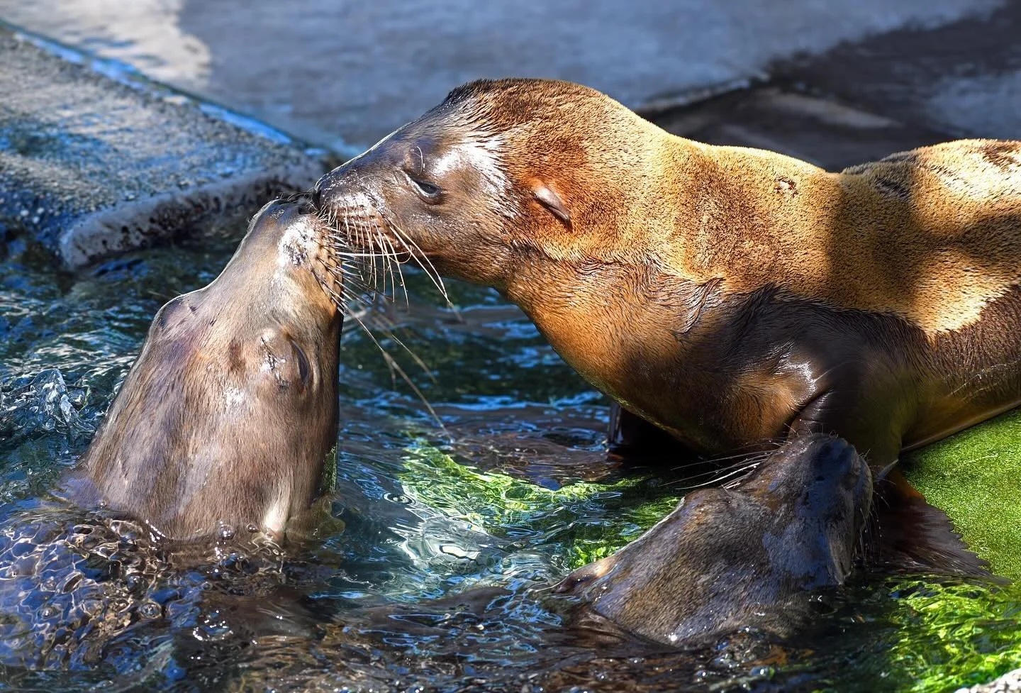 View fullsize Sea lions have extremely sensitive whiskers called vibrassae that have trigeminal nerves transmitting sensory information when they touch things with their snouts. It makes you wonder what they’re learning when booping snoots with other sea lio